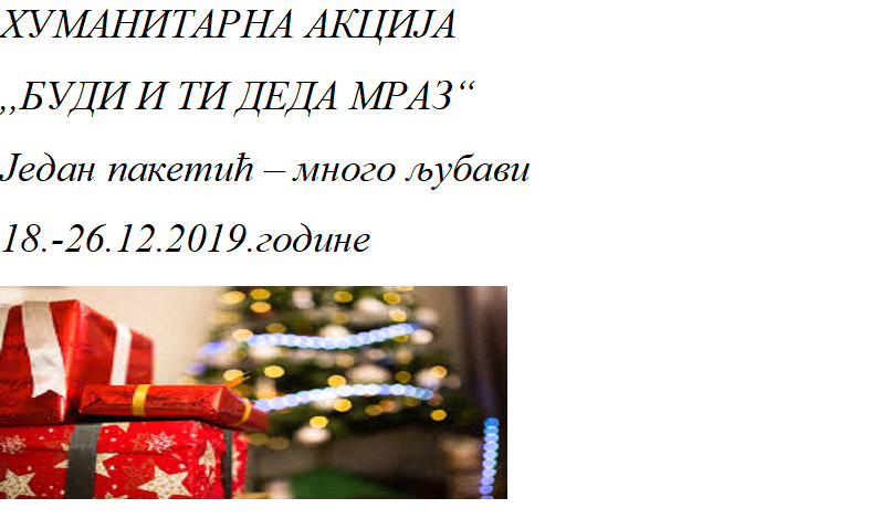 ХУМАНИТАРНА АКЦИЈА ,,БУДИ И ТИ ДЕДА МРАЗ"